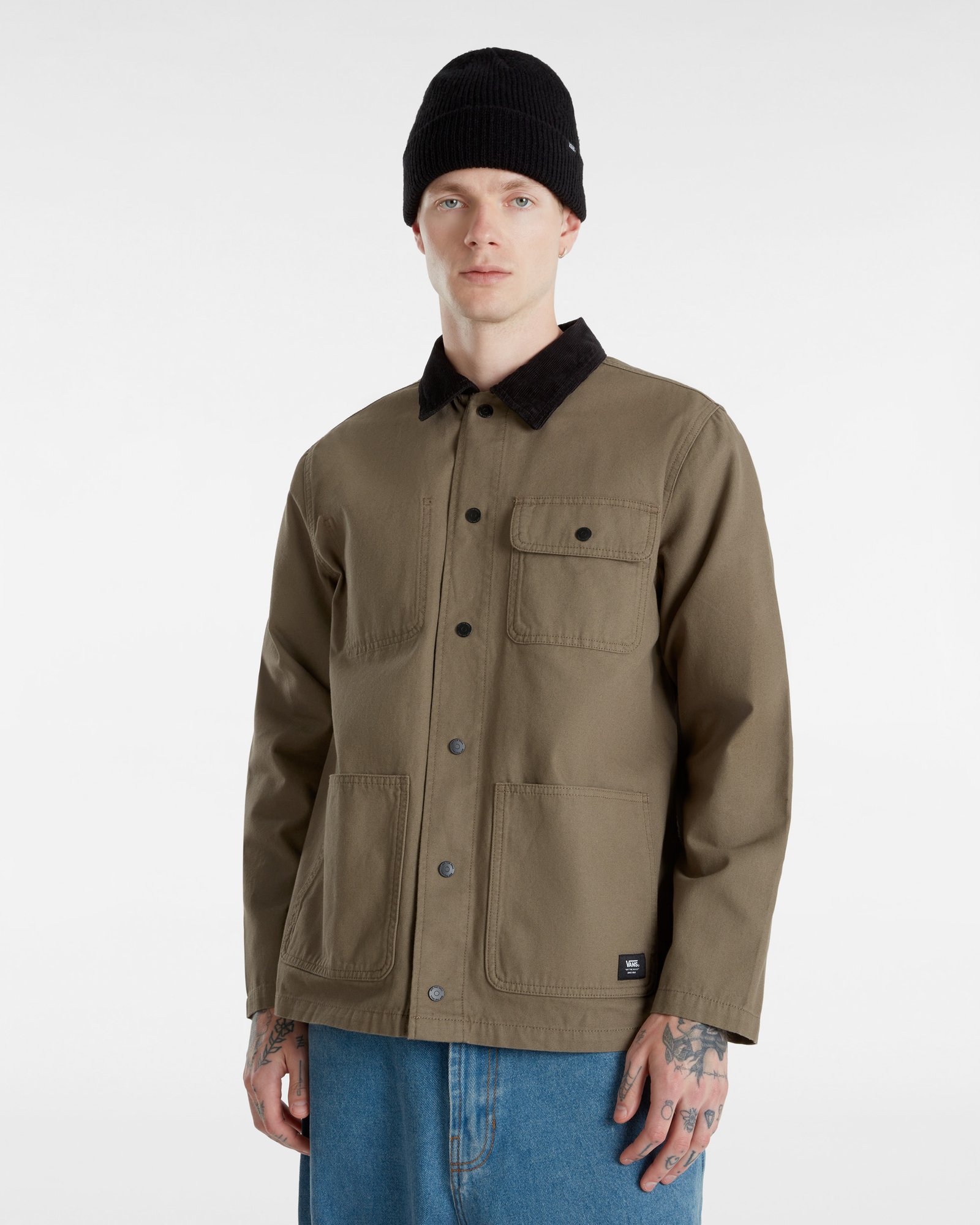 Холщовая ткань, логотип бренда, двухцветный, классический воротник, однобортный, длинные рукава, манжеты на кнопках, шерповая подкладка, кнопки-застежки, множество карманов. Состав: 100% хлопок